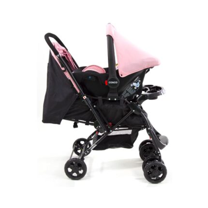 Carrinho de Bebe Travel System Duo Reverse Rosa Rajado com Bebê Conforto – Cosco