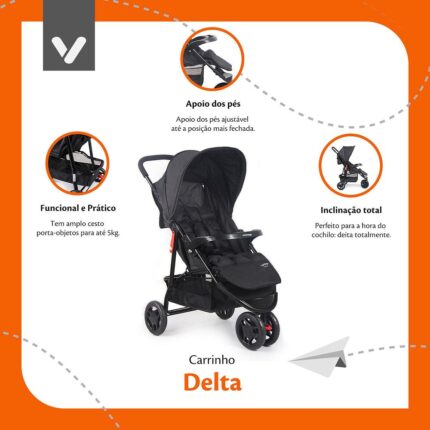 Carrinho de Bebê Delta Cinza Mescla – Voyage