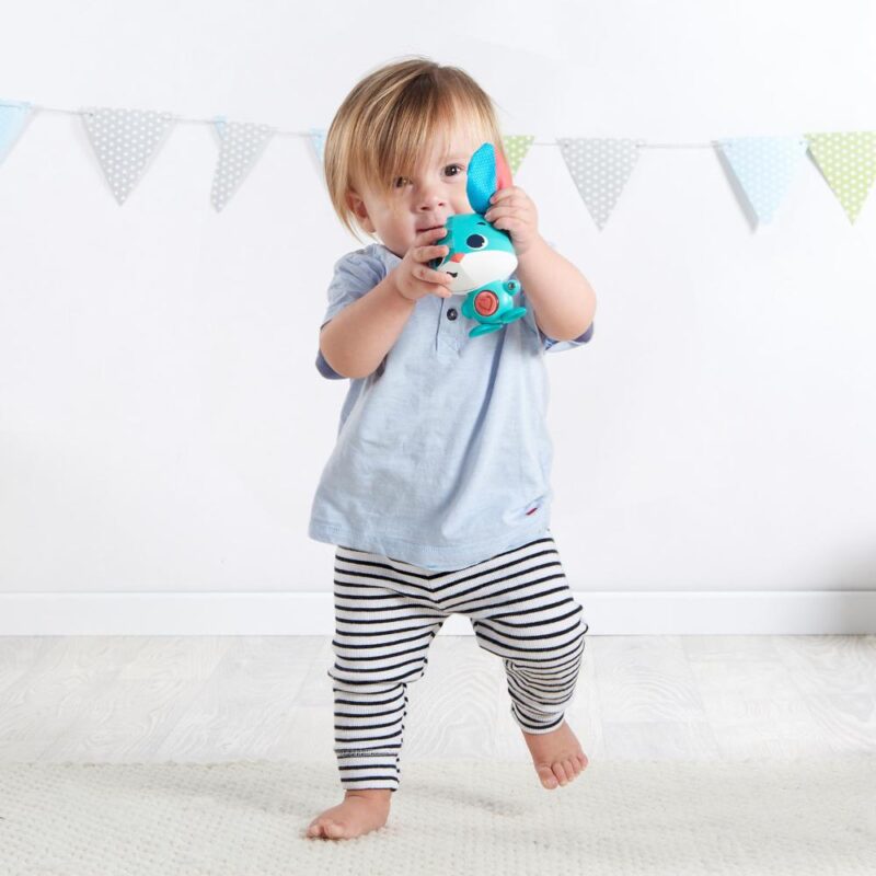 Arco flexível para acoplar em diversos acessórios, dobra para qualquer lado. Cobre dois estágios de desenvolvimento: de rebater e de puxar. Tem espelho, chocalho e mordedor.
