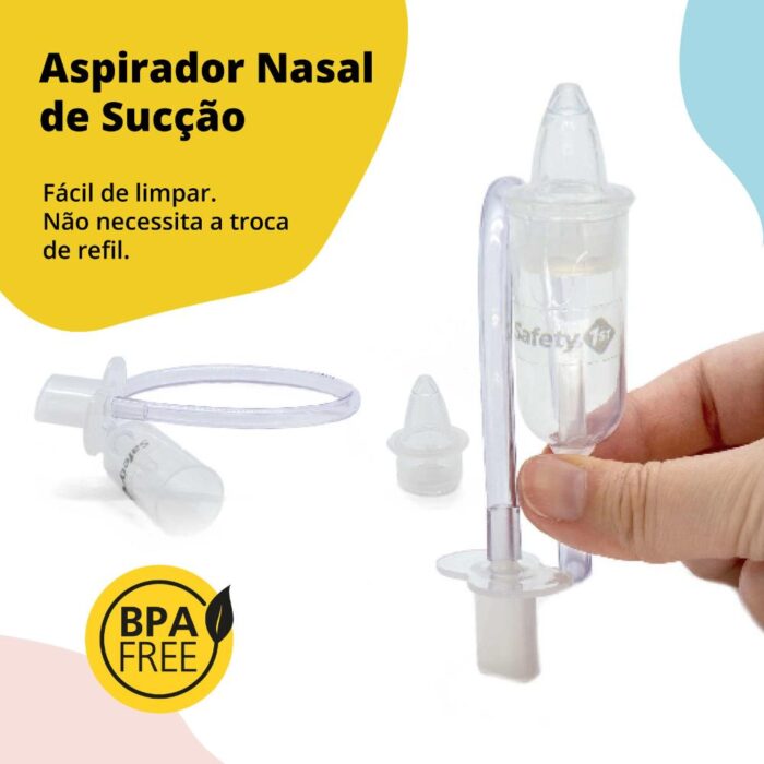 O Aspirador Nasal de Sucção da Safety 1st foi desenvolvido com o objetivo de tornar não só o dia a dia da mamãe mais prático, mas trazer essa praticidade para a vida dos pequenos também. Sua ponteira é de silicone e possui o tamanho ideal, o que garante o máximo de conforto além de não machucar o nariz deles. Seu recipiente de contenção é lavável e de fácil reinstalação, não necessitando de refil. Feito com Polipropileno (PP) e silicone, garante uma alta durabilidade e mantém vocês livres de BPA e ftalatos, que são materiais nocivos para a saúde.
