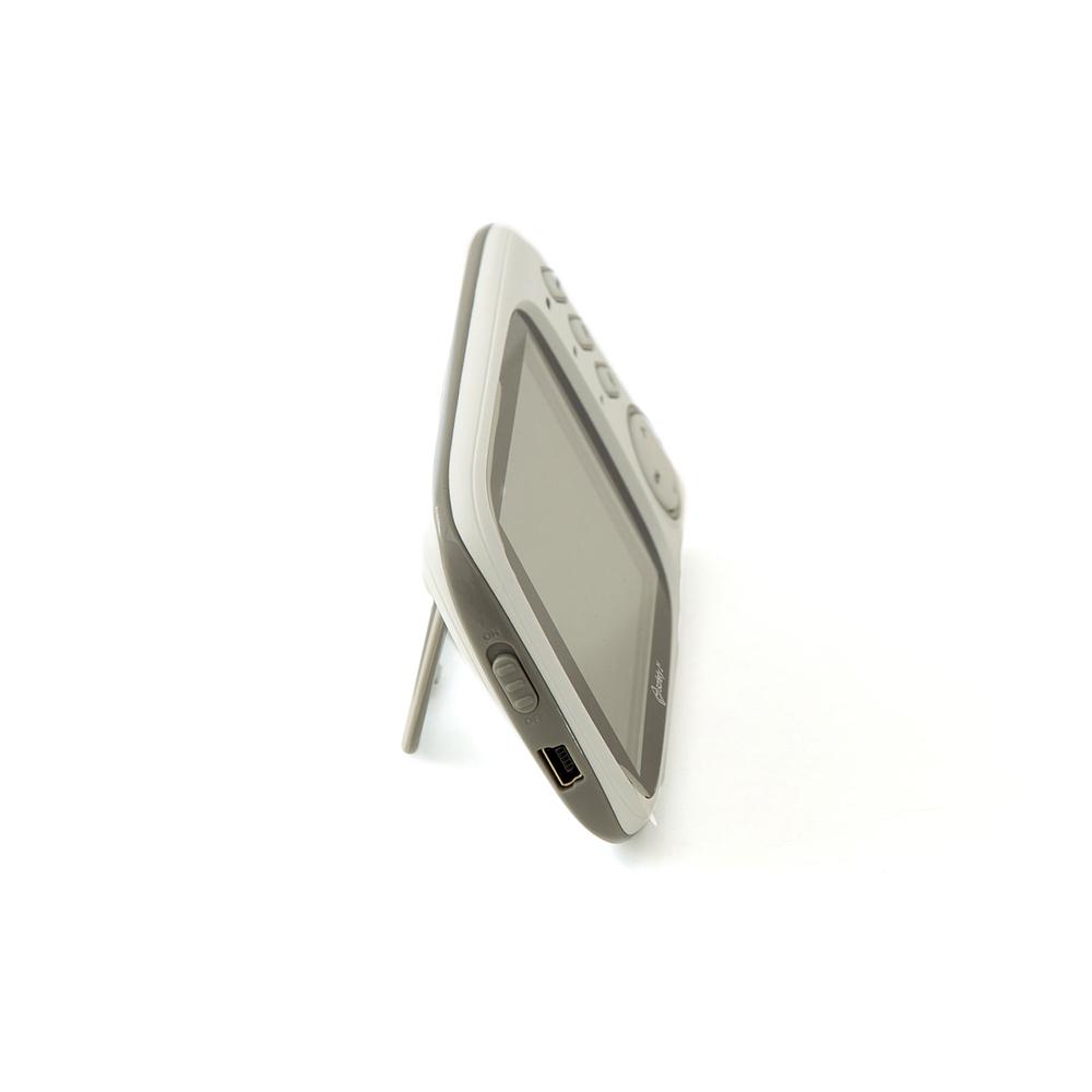 Tela LCD colorida de 3,2” com tecnologia IPS, imagens nítidas, zoom e possibilidade de visualizar até 2 câmeras ao mesmo tempo. Visão noturna, sensor de temperatura, 8 músicas de ninar e função Talk Back para falar com o bebê à distância. Alcance de até 260m, acionamento por voz, conexão wireless 2.4g, bateria recarregável e alarme programável.