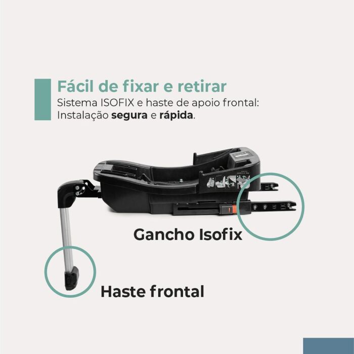 -Instalação fácil e segura com sistema Isofix e haste frontal