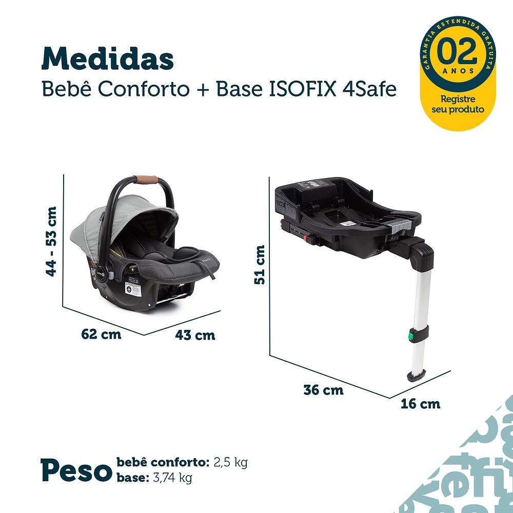 Medidas AxLxP: Bebê conforto: 62 x 43 x 53 | Base: 51 x 36 x 16