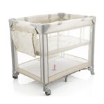 Design compacto para ser usado em qualquer lugar. Duas alturas e colchonete com ziper para maior segurança, laterais em tela, bolso porta objetos, mosquiteiro e bolsa de transporte.
