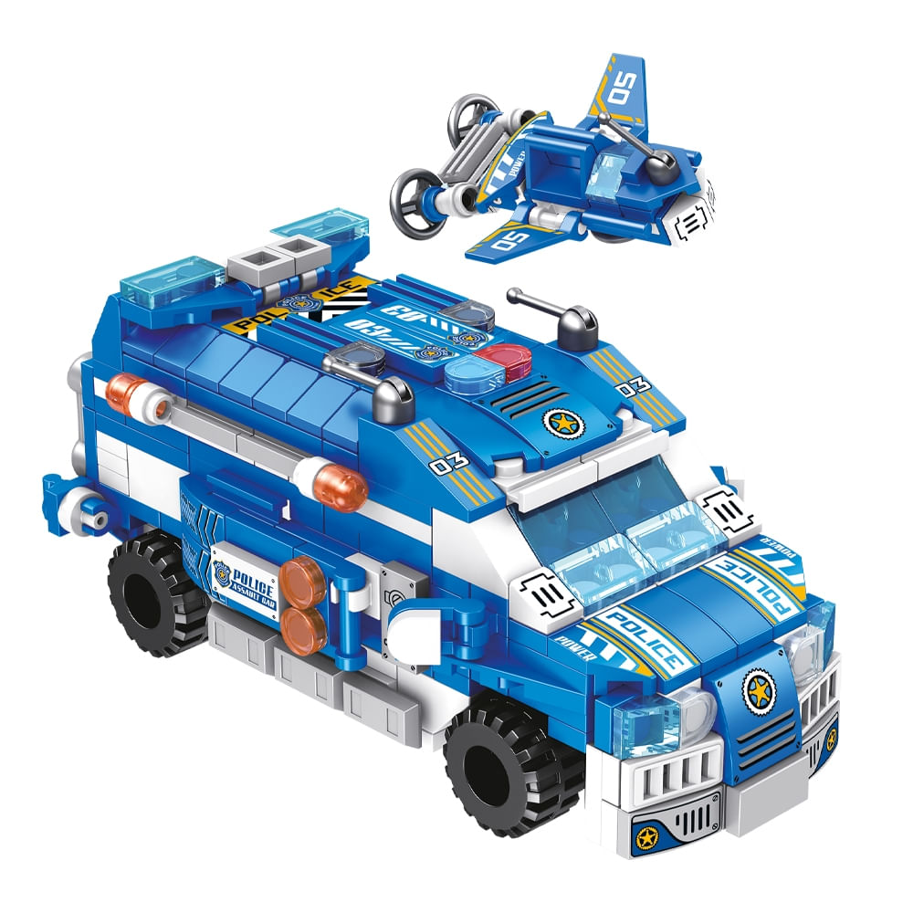 São mais de 500 peças para montar 24 diferentes tipos de veículos de polícia ou montar um incrível e poderoso Carro de Operação Policial!