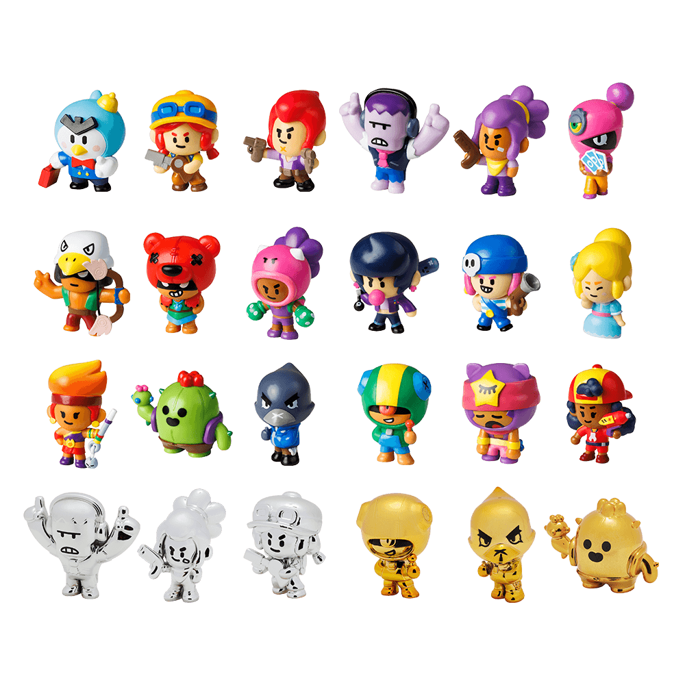 São 24 personagens para colecionar, incluindo seis Brawlers raros: Spike, Crow, Leon, Meg, Sandy e Amber.