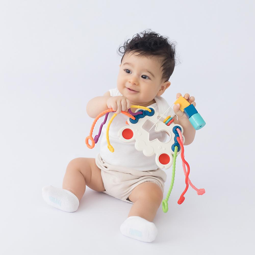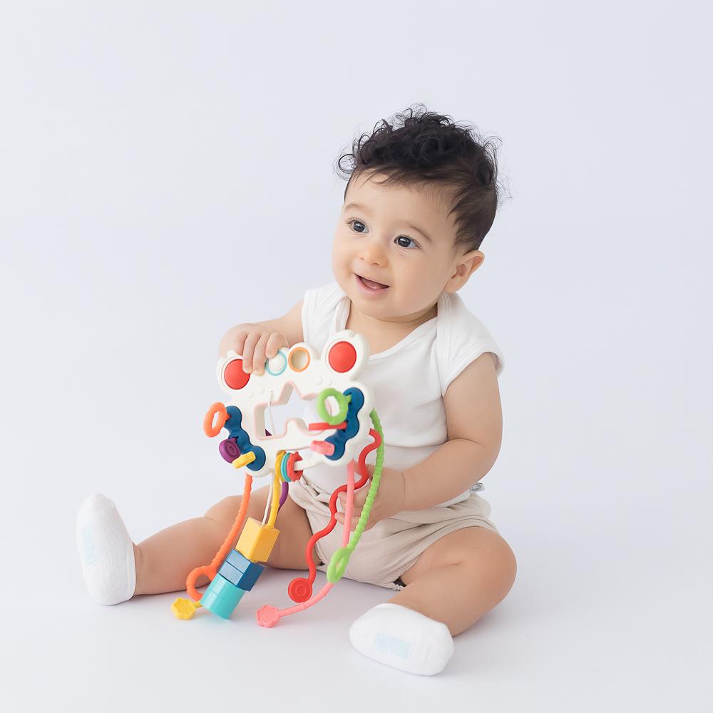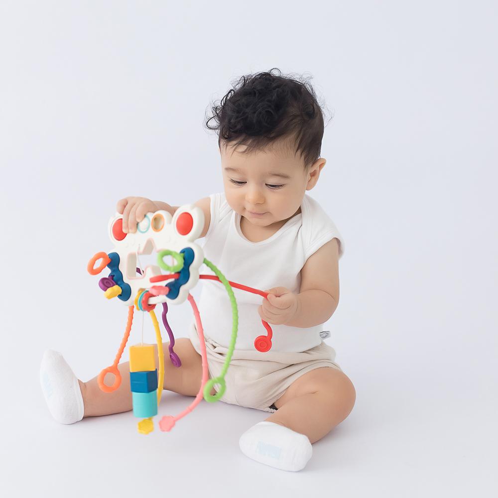 O Brinquedo Sensorial Cordão da Pimpolho, em formato divertido de siri, convida o bebê a descobrir formas, cores e texturas enquanto desenvolve habilidades essenciais. Com estímulos alinhados ao método Montessori, ele transforma a curiosidade em aprendizado desde os primeiros meses.