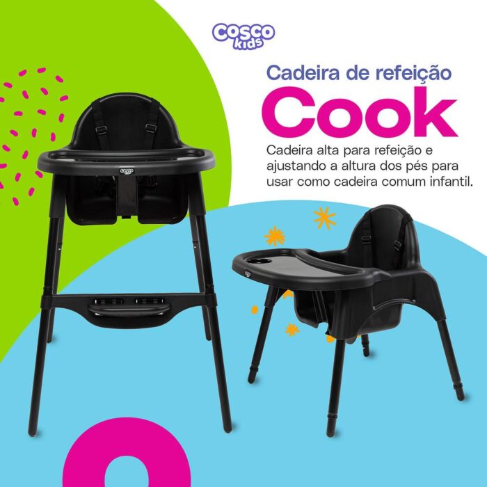 Cadeira de Refeição Infantil Cook Preto- Cosco Kids