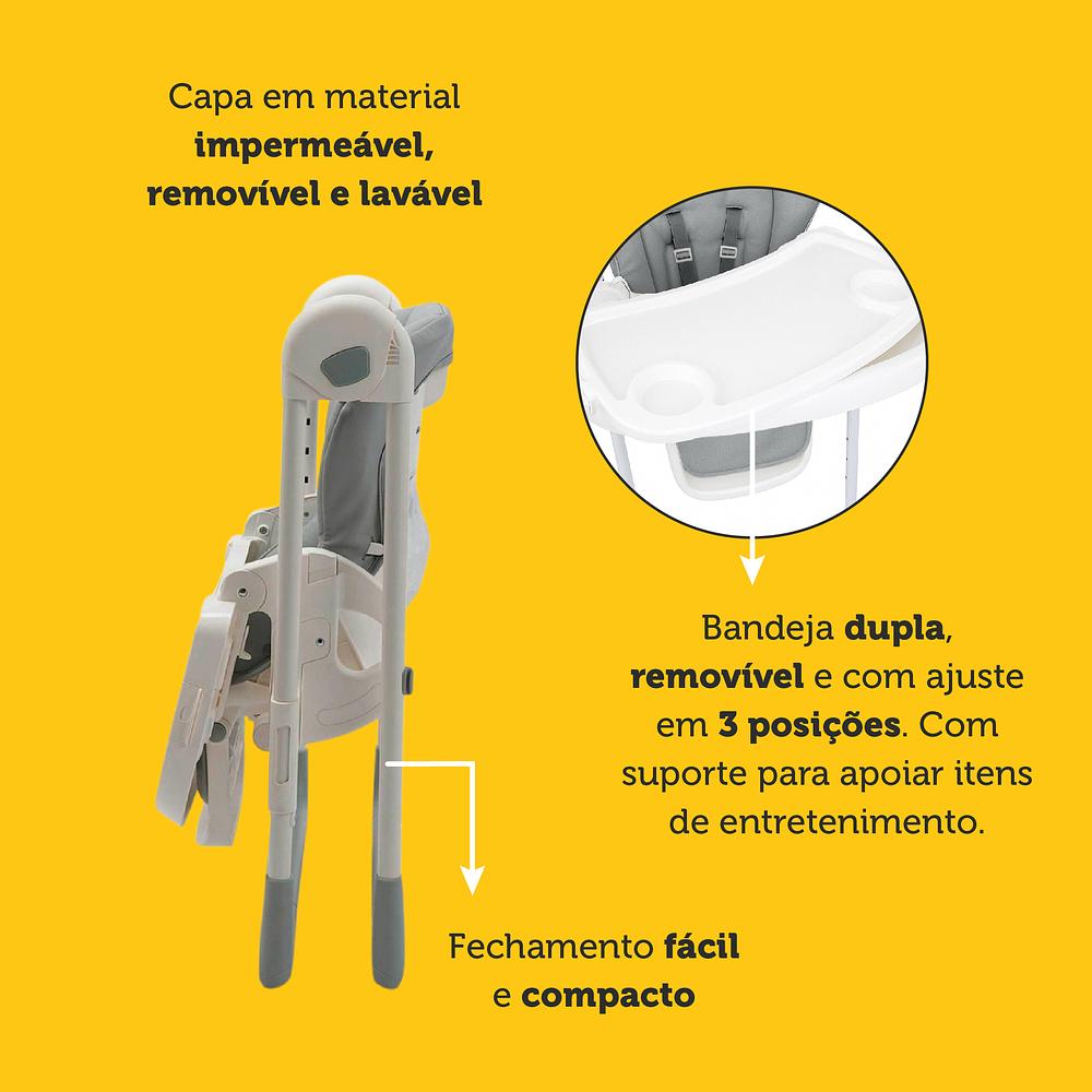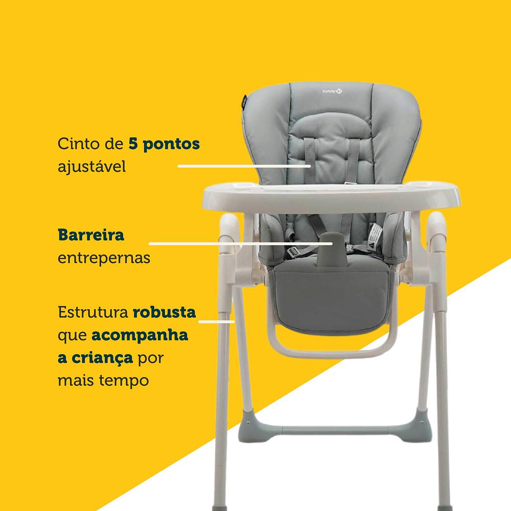 Com a Cadeira de refeição Mellow da Safety 1st, o seu filho desfrutará de cada refeição, mais do que nunca! Esta cadeira é feita com uma estrutura forte e resistente, que dá ao seu pequeno toda a segurança e estabilidade que ele precisa. Além disso, você pode ajustá-la em suas 8 posições de altura diferentes e 4 posições de inclinação do encosto, e apoio dos pés ajustável em 3 posições, podendo ser usada também como uma cadeira de descanso pelos recém-nascidos.
