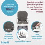 A cadeira de refeição portátil Toast da Infanti acompanha as refeições do bebê com muito mais praticidade para os pais, mesmo em ambientes menores, onde o melhor aproveitamento do espaço se faz necessário, para que o bebê tenha sempre o local exclusivo para a sua alimentação, sempre à mão, perfeitamente higienizado, em casa, restaturantes ou hoteis ou aonde for.