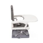 Adapta-se facilmente as cadeiras comuns de adulto, com tiras de fixação para maior segurança, ajustável em 3 posições de altura, cintos de segurança para o bebê, bandeja removível e fechamento muito fácil e ultra-compacto com alça para transporte. Capa protetora do assento, acolchoada para maior conforto, impermeável, facilmente removível e lavável.