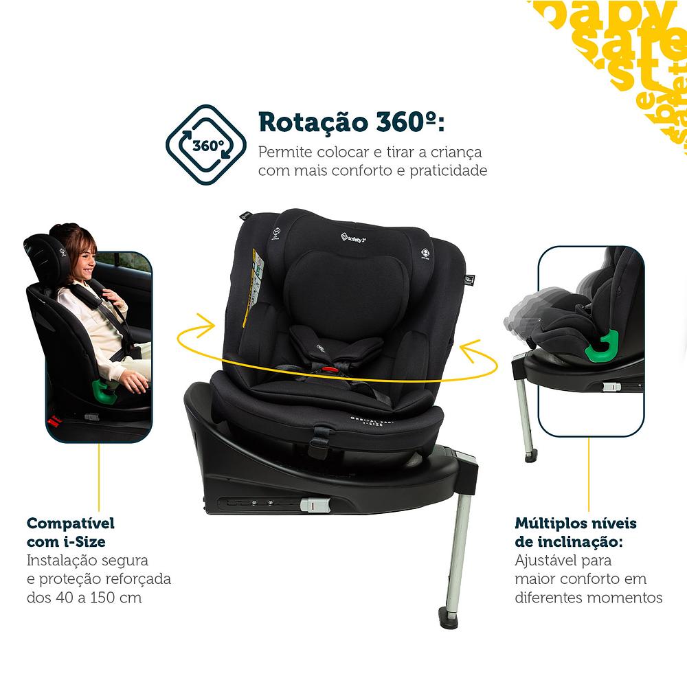 -Rotação 360º em todas as faixas de uso, facilitando o dia a dia dos pais e o posicionamento da criança em qualquer fase.