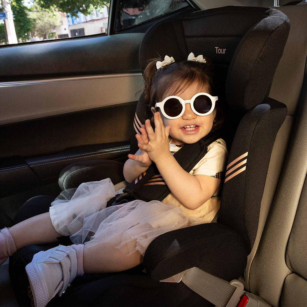 A cadeirinha Tour acompanha a criança aproximadamente desde o primeiro aniversário até os 10 anos de idade. Feita pra durar, ela vai se adaptando ao crescimento da criança para dar conforto em todas as fases.