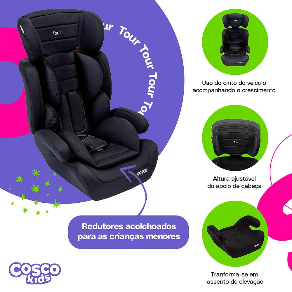 Cadeirinha de Bebê Tour 9-36kg Vira Booster Cosco Kids Preto