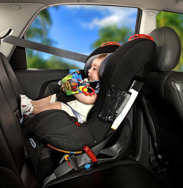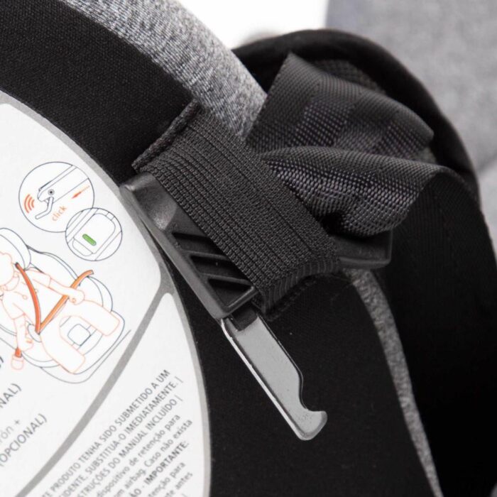 – Elásticos de apoio nas laterais ajudam a colocar e retirar os cintos da criança