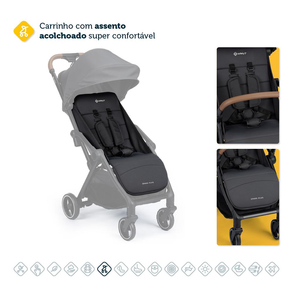 Sistema completo com carrinho Spark Plus, bebê conforto 4safe e base 4safe Isofix, perfeito para o dia a dia e viagens.