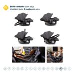– Sistema completo integrado de carrinho, bebê conforto e base.