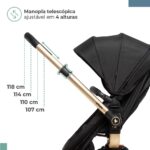 -Manopla telescópica ajustável em altura para os pais conduzirem o carrinho com mais conforto