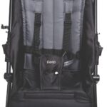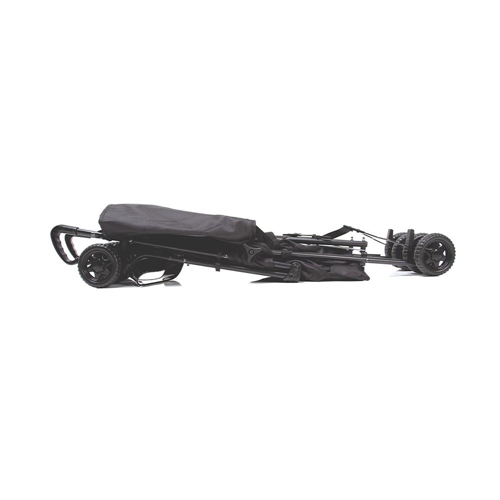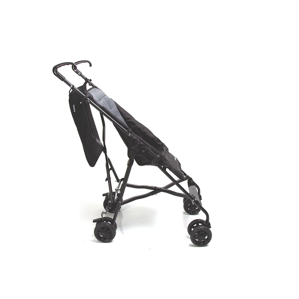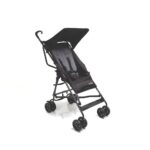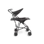 Muito leve, prático e compacto. Assento reclinável, capota, 4 rodas duplas, freio e cinto de 5 pontos com duas alturas. Fechamento guarda-chuva e bolsa de transporte.