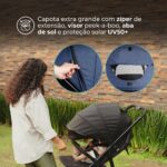 -Capota extra grande com zíper de extensão, visor peek-a-boo, aba de sol, proteção solar UV50+ e alça para pendurar brinquedos (brinquedo não incluso).