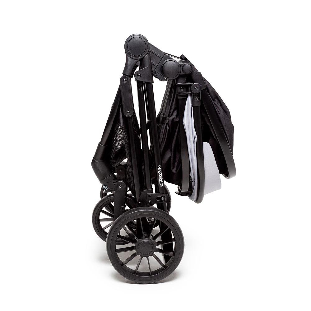 -Fecha com o assento junto, mais fácil de guardar e de levar no porta-malas.