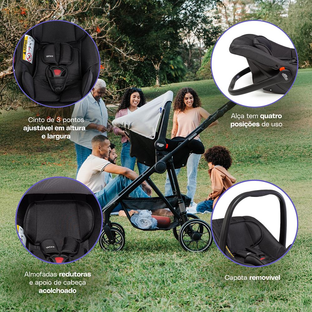 Conteúdo da embalagem: 1 carrinho, 1 par de adaptadores, 1 bebê conforto, 2 manuais