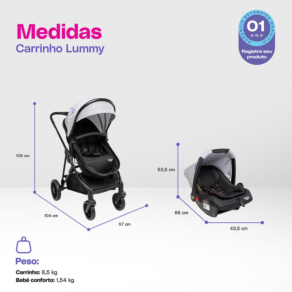 Carrinho de Bebê Travel System Cinza Gelo Lummy Cosco Kids