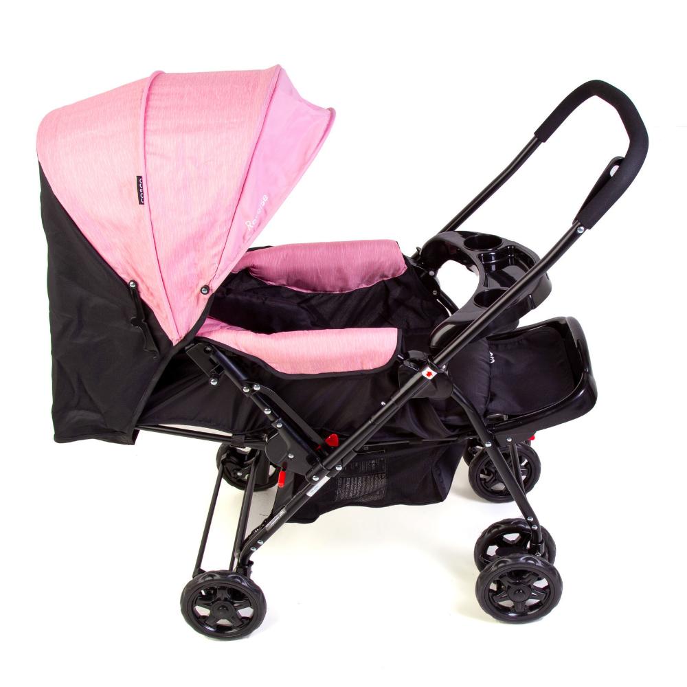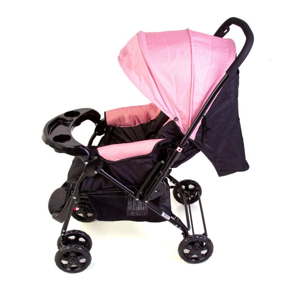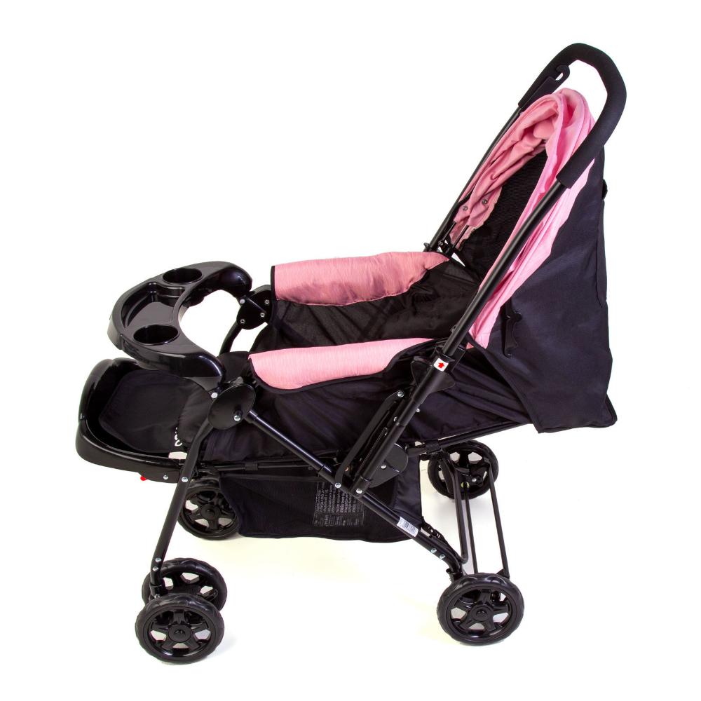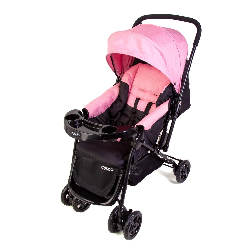 Carrinho de Bebe Travel System Duo Reverse Rosa Rajado com Bebê Conforto – Cosco