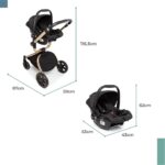 – Dimensões:  Bebê conforto: 62 x 43 x 53 | Base: 57,5 x 36 x 16