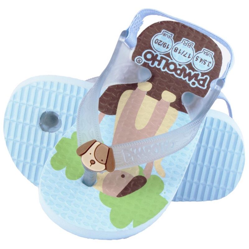 O chinelo Pimpolho possui solado estampado e com alta absorção de impacto e umidade, é flexível e o solado é produzido em borracha natural, que o torna leve e duradouro.