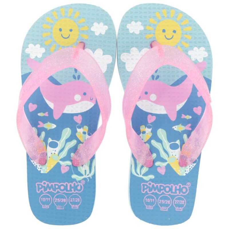 O Chinelo Pimpolho Slim possui alça metalizada, alça com glitter e solado estampado, design moderno e colorido com estampas que seguem as tendências.