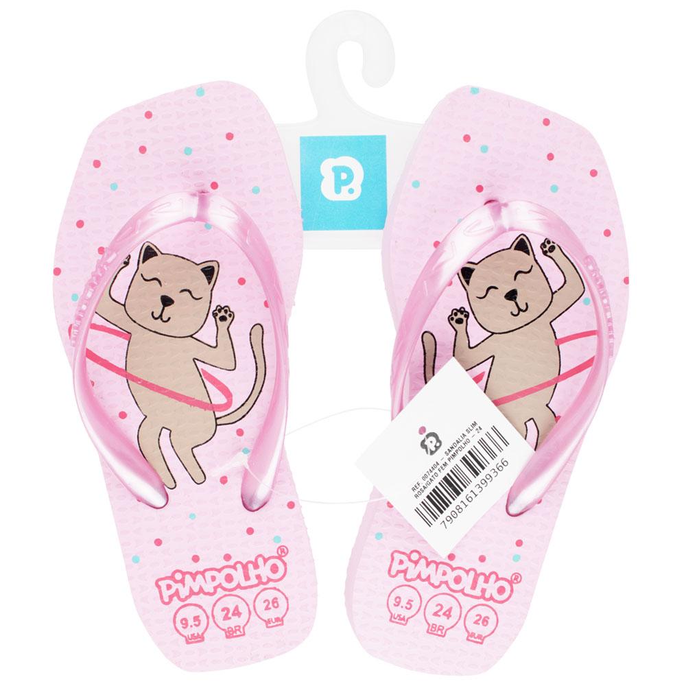 Chinelo Quadradinho Slim Rosa/Gato Fem Pimpolho – 24
