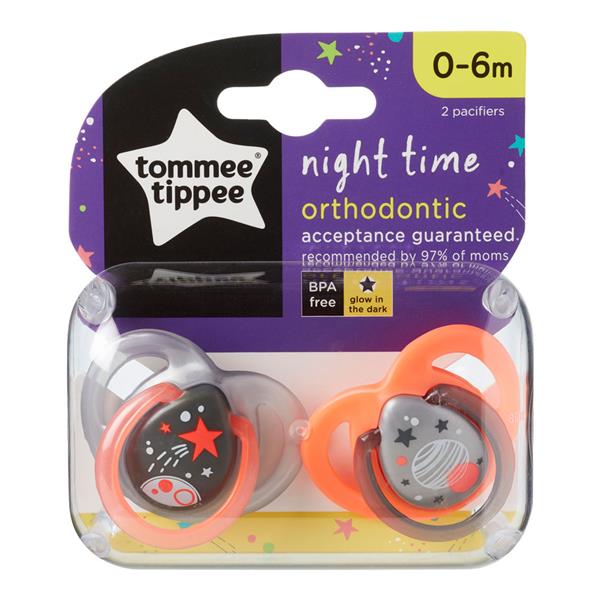Chupeta Night Time Tommee Tippee 2 Und 0-6 M Cinza com Laranja – TT012 TT012