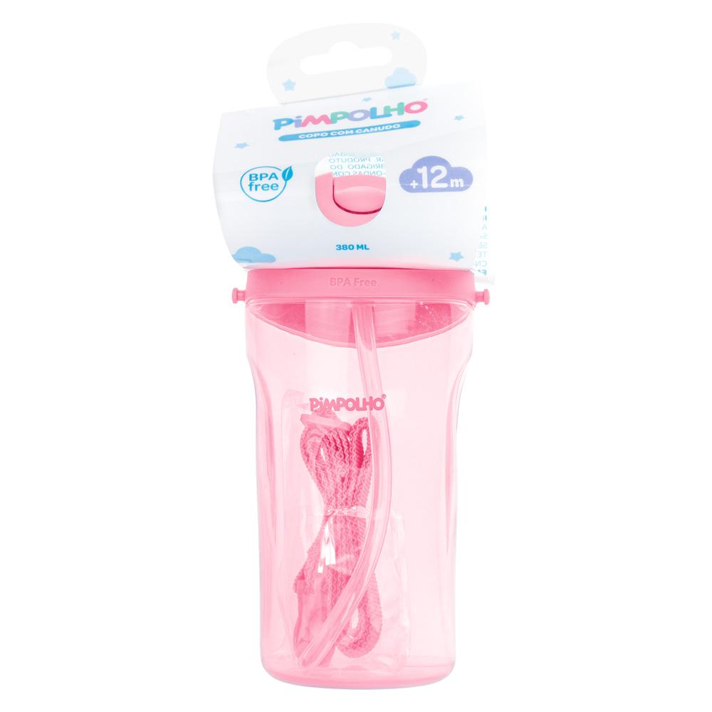 Copo Inclinado Infantil Pimpolho C Canudo Cordinha 380ml – ROSA