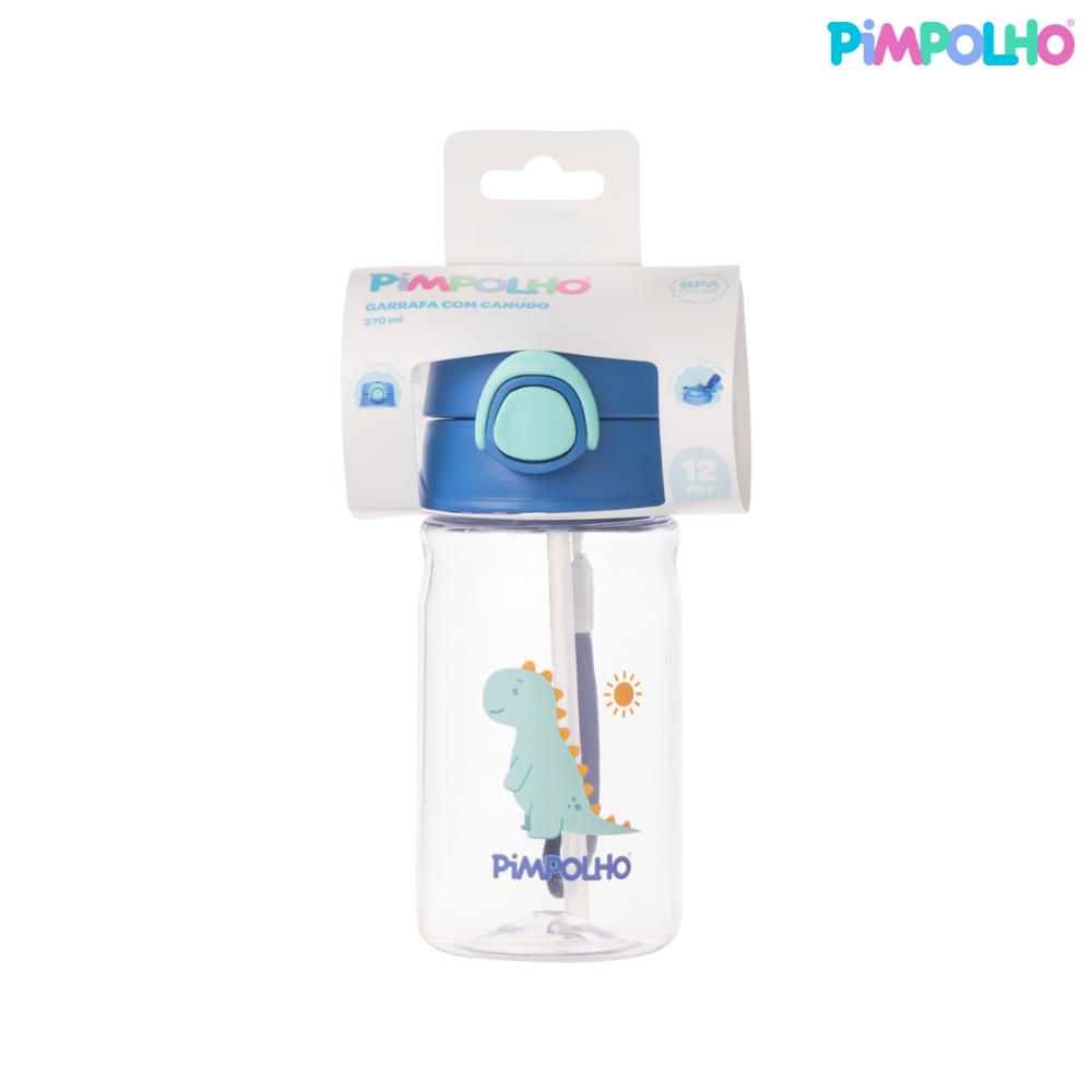 Garrafa Infantil Cristal 370ml com Canudo Pimpolho – AZUL