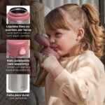 Uma garrafa feita para acompanhar os pequenos por muito tempo, com alça removível, tampa antivazamento e isolamento térmico duradouro.