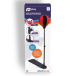 O brinquedo acompanha luvas inclusas e possui altura ajustável, permitindo que a criança adapte o saco de boxe conforme sua necessidade e tamanho.