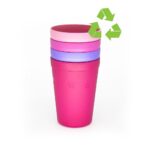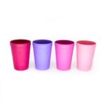 É totalmente livre de materiais tóxicos, sem BPA (Bisfenol-A e Ftalatos) e é amigável com o meio ambiente, pois pode ser reciclado. São feitos em Polipropileno (PP) e podem ir ao micro-ondas, congelador e até na lava-louças. Também são empilháveis para o armazenamento, trazendo a facilidade que os pais precisam para o seu dia a dia. O kit é composto por 4 copos de 380 ml cada, em cores variadas.