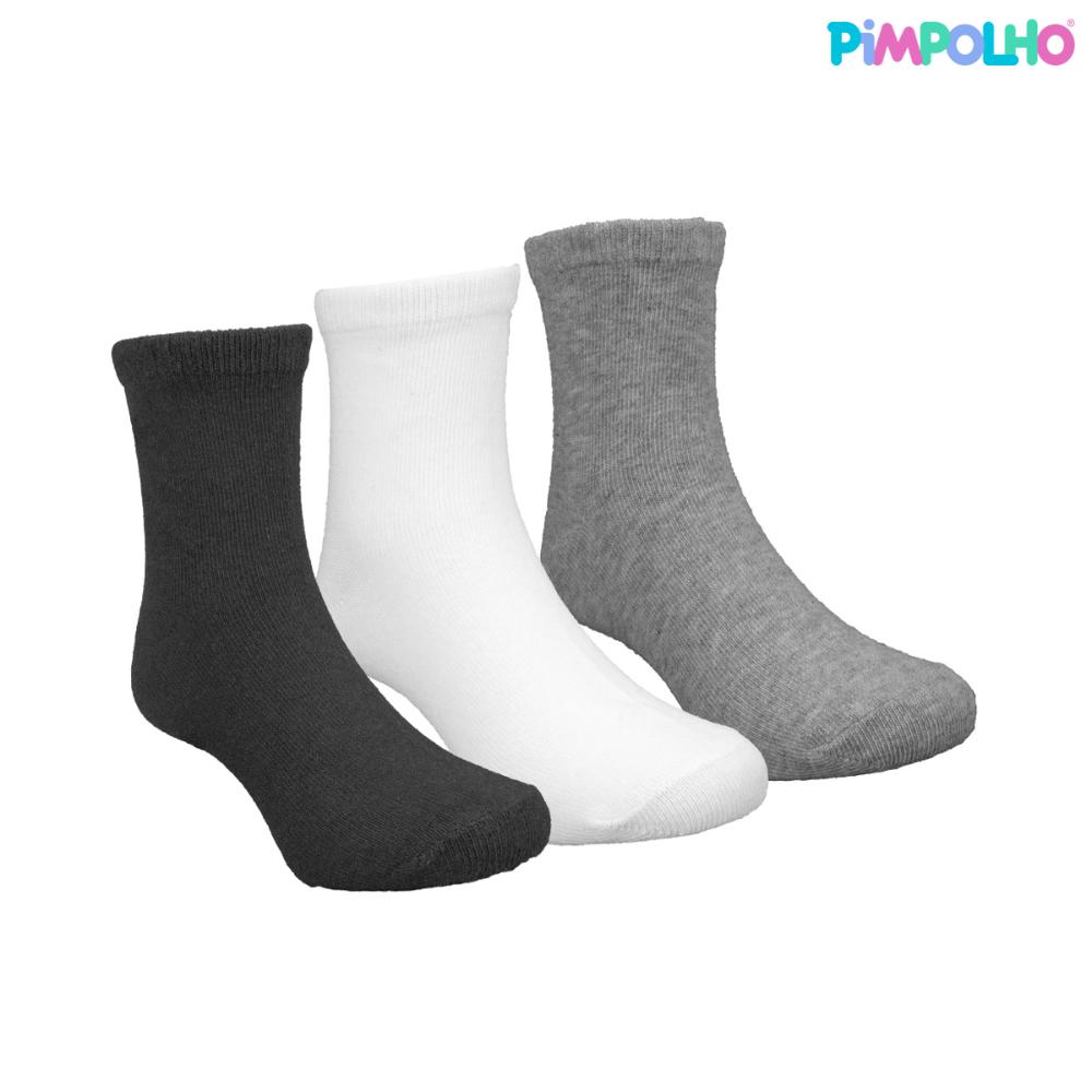 Kit Meia Lisa 3 Prs/Tag Cano Alto 26-30 Unissex Pimpolho – Branca/Cinza/Preta