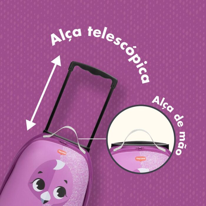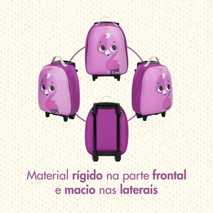 Ir para a escola ou para uma viagem especial de forma segura e divertida. A mala de rodinha da Coleção Safari é espaçosa e resistente. Com alça manual e rodinhas, ela se adequa às necessidades da criança e facilitam o transporte.