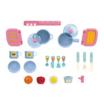 Compacta, portátil e com alça para levar no ombro, ela se abre para revelar um mundo de brincadeiras com panelinhas, utensílios, copos, pratos, comidinhas e muito mais.