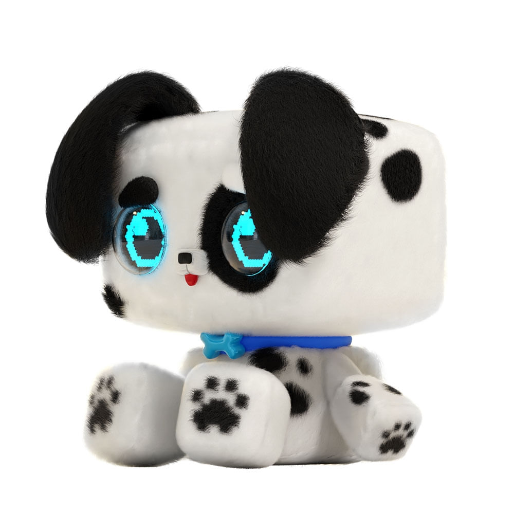 As orelhas caidinhas, o corpinho macio e os detalhes em estilo pixelado tornam esse cachorrinho uma mistura perfeita de fofura e tecnologia.