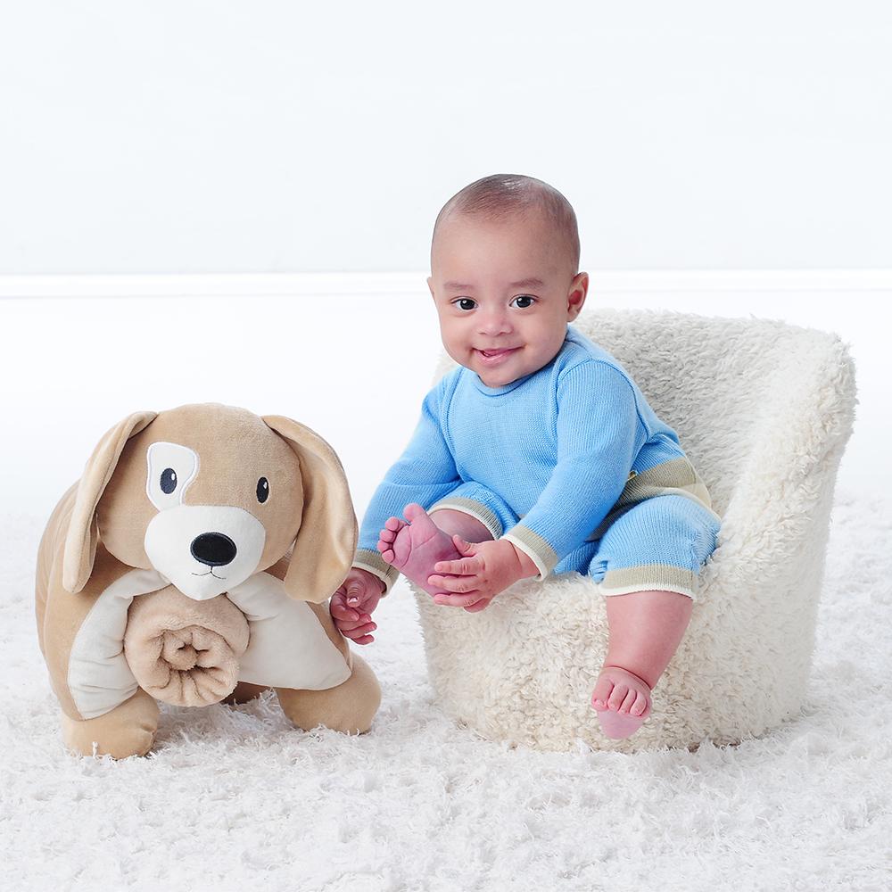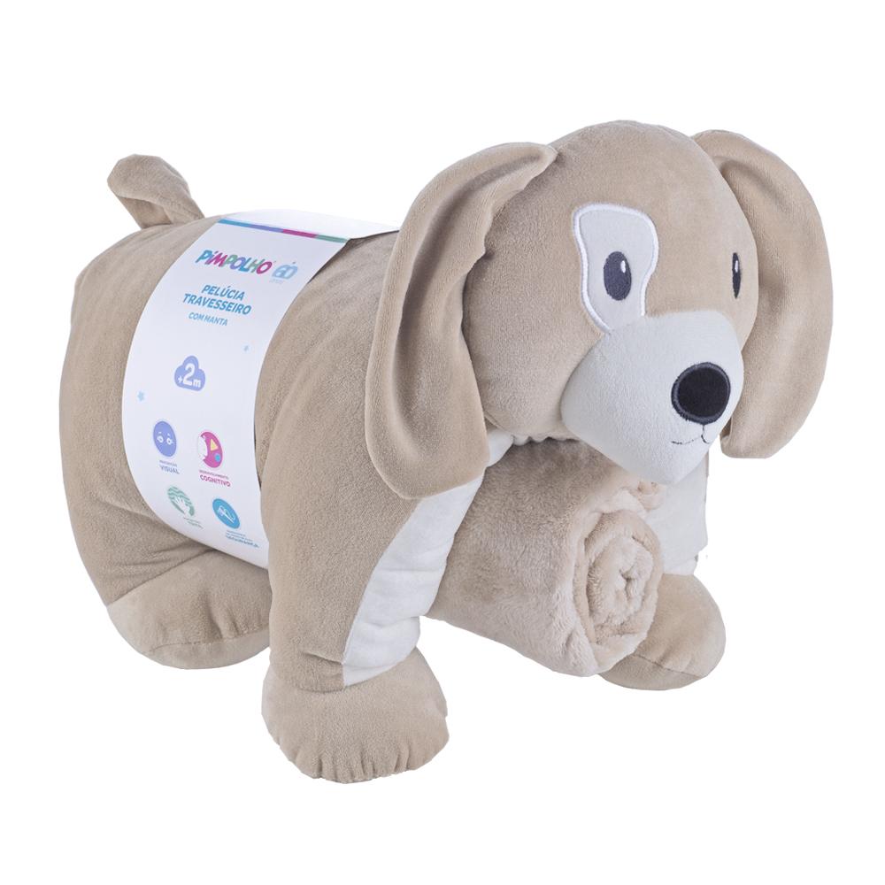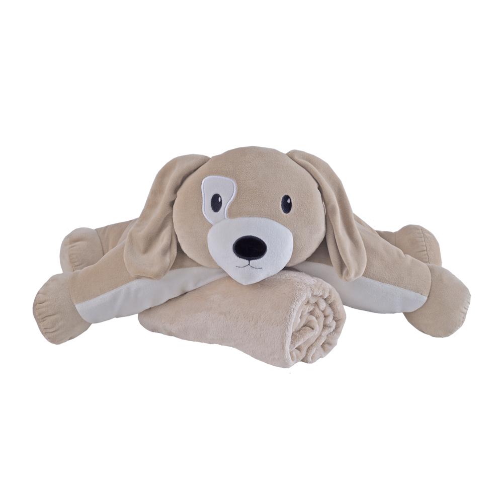 PELUCIA TRAVESSEIRO C/MANTA CACHORRO MASC PIMPOLHO – BEGE