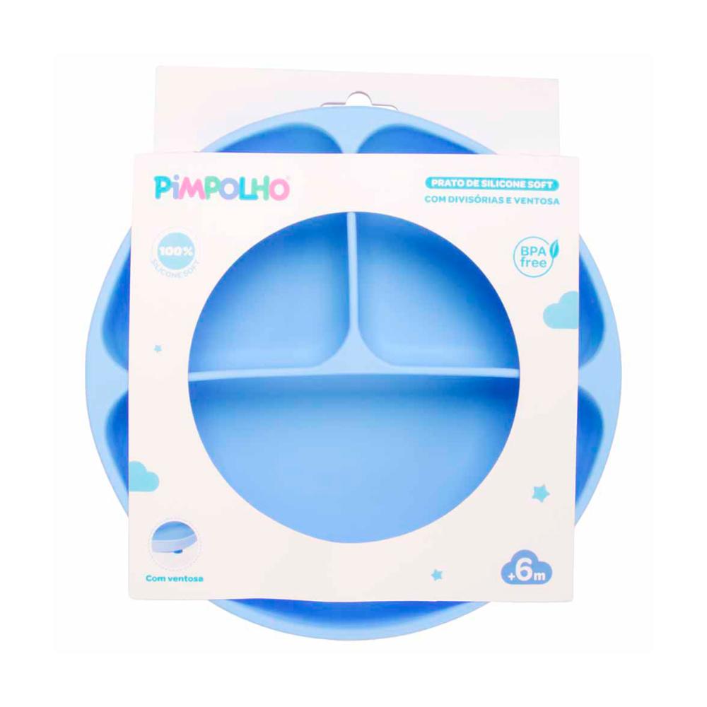 Prato Infantil Silicone Com Divisória Ventosa Soft Pimpolho – AZUL