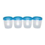 - Kit com 4 recipientes para leite materno com tampa de 180 ml cada