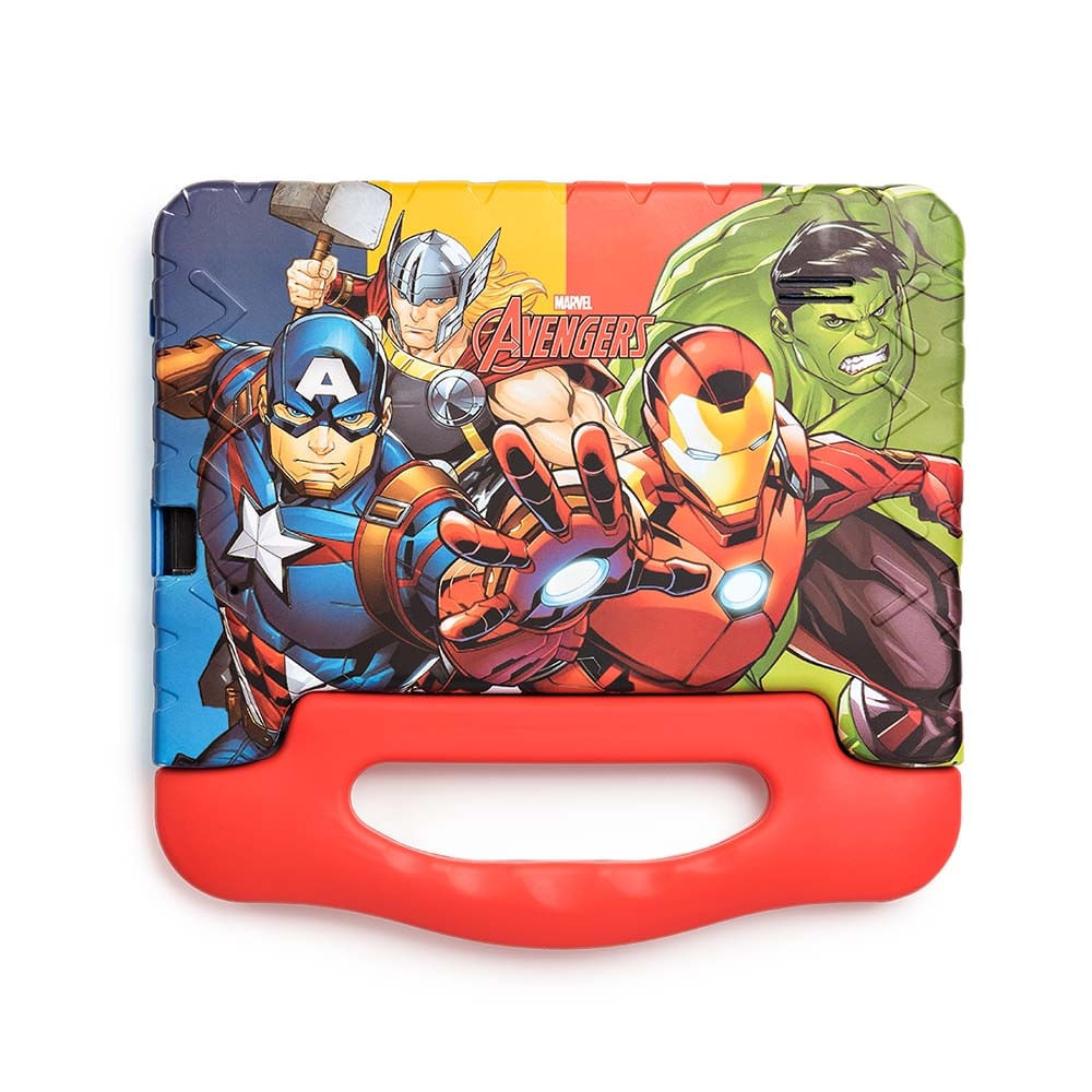 O Tablet Infantil Avengers vem com uma case emborrachada e com alça que protege o dispositivo e garante mais conforto e segurança.