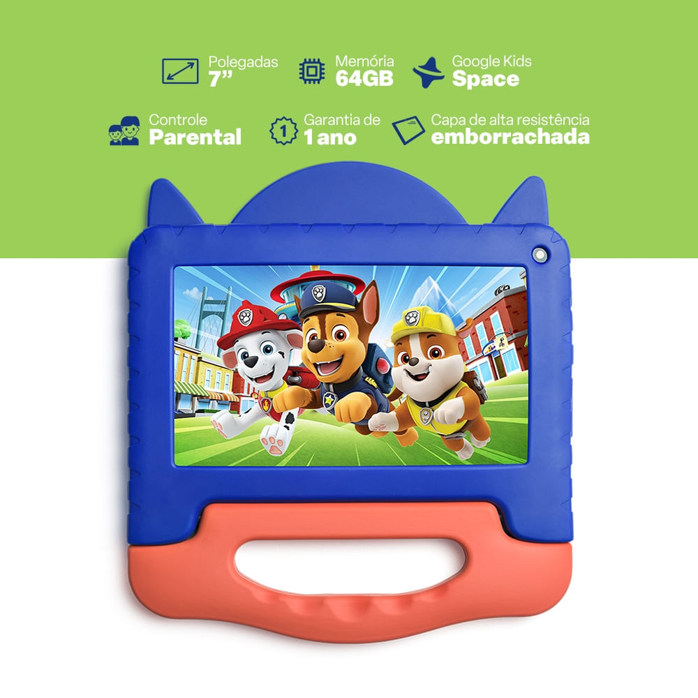 Tablet Infantil Patrulha Canina Chase 4GB RAM + 64GB Tela 7 pol Android 13 Quad Core Multi – NB421