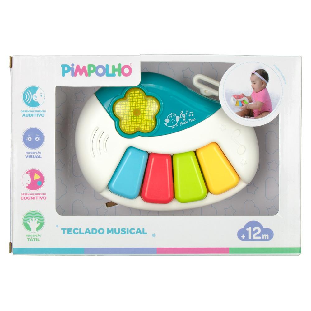 O teclado musical Pimpolho é interativo e divertido. Tem luzes, botões e sons que estimulam o desenvolvimento da criança.