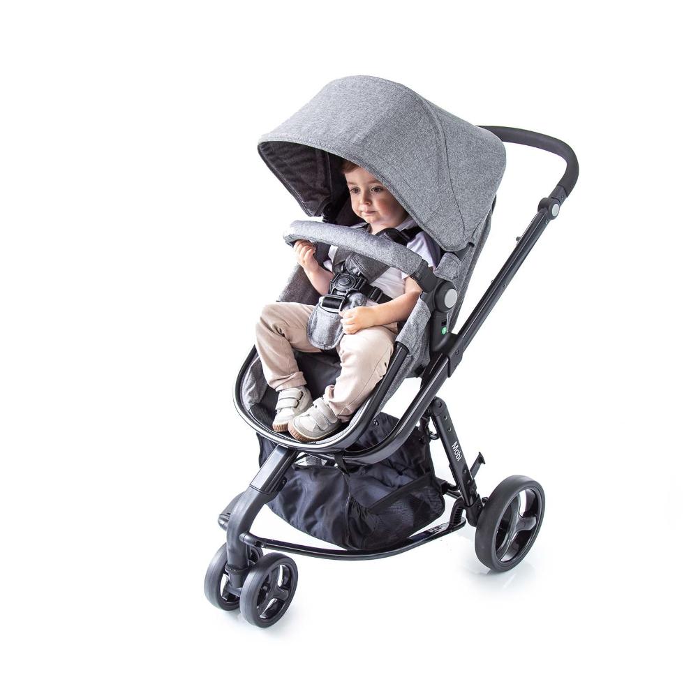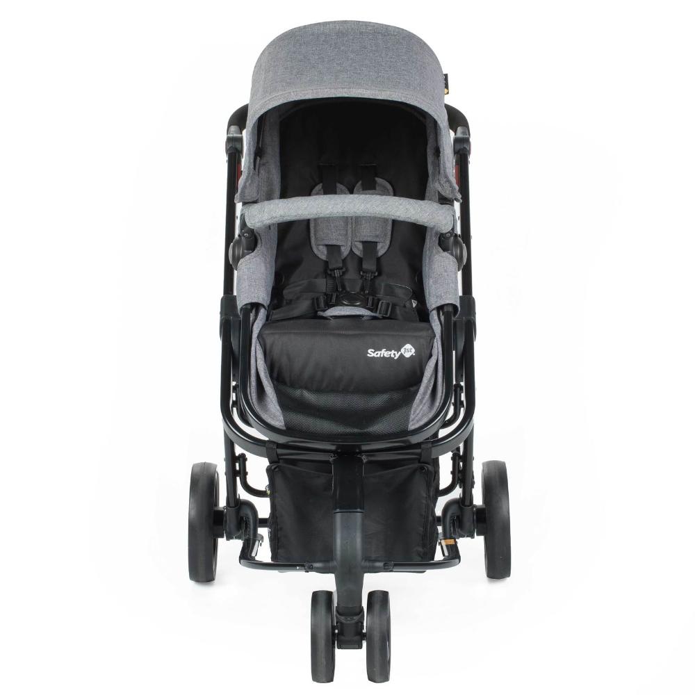 Travel System Mobi TS TRIO Safety 1st, completo, moderno e confortável. O carrinho tem estrutura de alumínio, assento reversível que se transforma em moisés, reclinável em 4 posições, encosto ajustável em múltiplas posições, manopla ajustável em altura, 3 rodas largas para mais conforto: roda dianteira dupla e rodas traseiras grandes, suspensão, freio centralizado, giro 360° com trava de movimento na roda dianteira, amplo cesto de compras com capacidade de até 5kg, cinto de segurança de 5 pontos com protetores acolchoados, ajustáveis em altura e largura, capota retrátil, removível, com proteção solar UV50+ e alça para brinquedo.